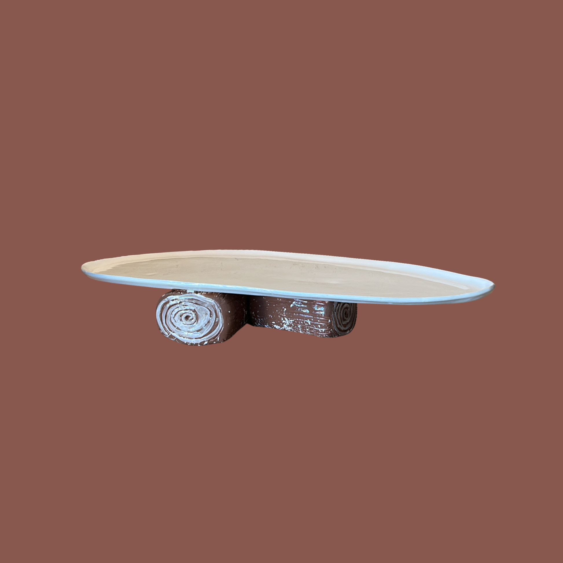 A refined ceramic platter designed to showcase the classic Christmas Bûche de Noël. With its log-inspired stand, and clean festive charm, it elevates your holiday table with effortless elegance.