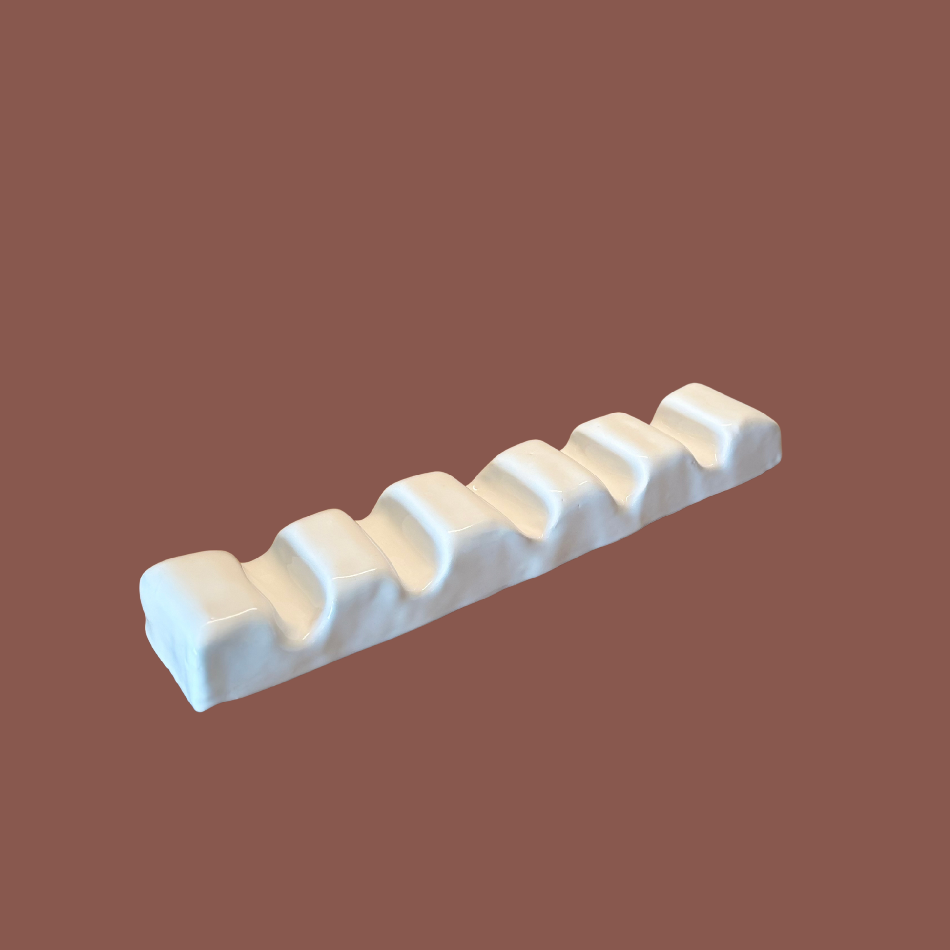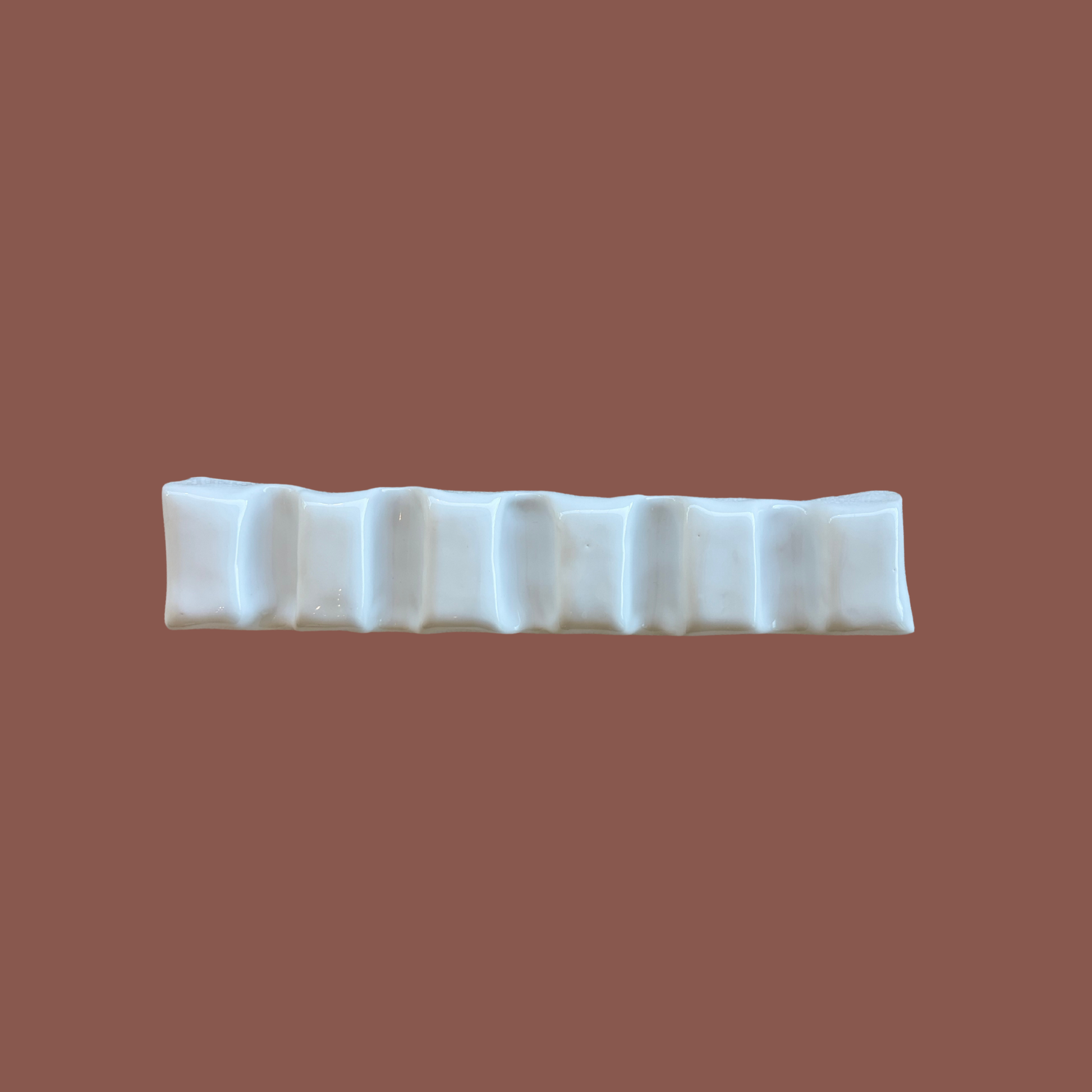 A long ceramic platter with playful ups and downs—perfect for spring rolls, sliders, baos, and bite-sized treats.